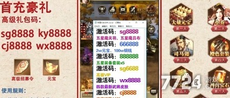 以上就是三国单机版礼包码大全最新的全部分享了,游戏还有很多其他的福利可以领取,同时其他游戏的福利也有很多,7724帛睿小编都是能够跟大家分享,是可以多多关注领取。