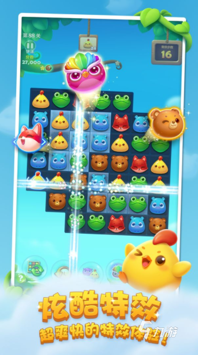 在系统规定的时候内将指定目标物依照一定的顺序进行消除,消除的瞬间有可能爆发出极其华丽的效果。障碍物众多,难度也就随之增大,还可以参加极限挑战。